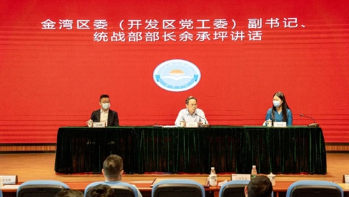 此外,余承坪在會上組織傳達學習了呂玉印書記4月12日來金灣區調研考察座談會上的講話精神,代表區委和區委統戰部,對區工商聯(總商會)所做的工作給予充分肯定,對新當選的副主席(副會長)、常委(理事)、執委(理事)表示祝賀,并鼓勵企業家堅定信心、克服困難,用好平臺、找準定位,搶抓機遇、做強做大。
